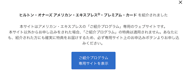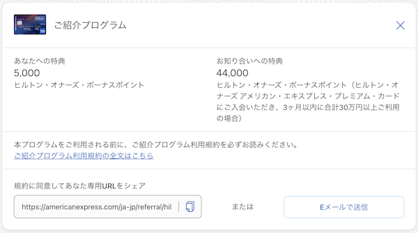 紹介リンクは、ヒルトンアメックス保有者が発行できるリンクです。
